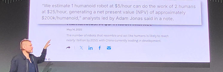 Roboter, die Aufgaben von Menschen übernehmen, werden in diesem Beitrag thematisiert: Es wird angekündigt, dass humaoide Roboter in etwa 15 Jahren serienmäßig verfügbar sein werden.